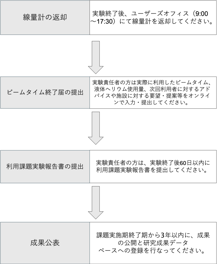 NanoTerasuでの実験終了後は、以下の流れに沿って手続きを行なってください。